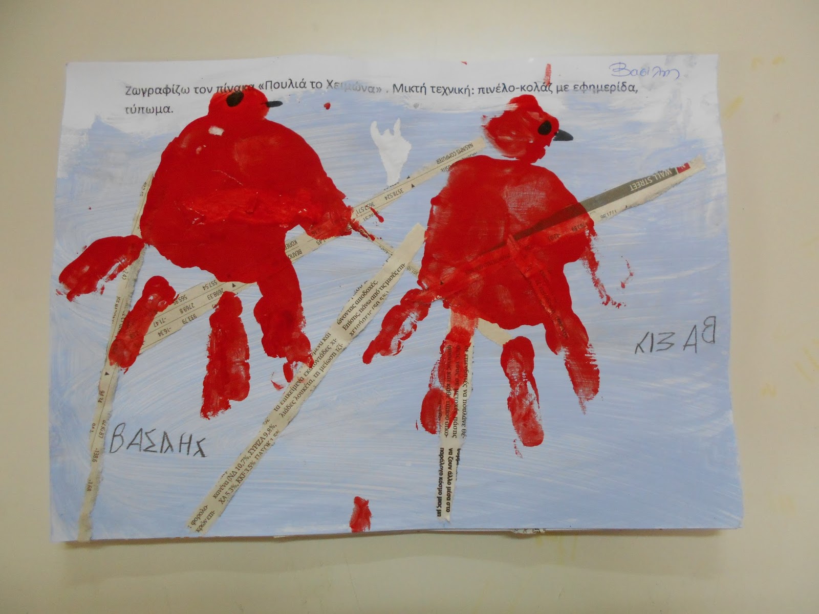 Ακούσαμε το τραγούδι,το αναλύσαμε και το τραγουδήσαμε.Τα παιδιά ζωγράφισαν σκηνές του τραγουδιού,έκοψαν καρδιές, έγραψαν ευχές (αγάπη, υγεία,ειρήνη,χαρά,χρόνια πολλά,κ.λ.π.) και τις κόλλησαν σαν φύλλα πάνω στα δέντρα