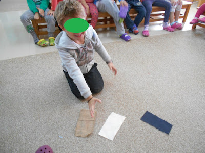 πρώτα έπιασαν τα υφάσματα, λινάτσα - τζιν - μεταξωτό και μετά με κλειστά μάτια προσπαθούσαν να τα αναγνωρίσουν μόνο με την αφή τους